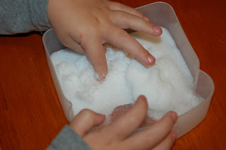 There are SO many things you can do with insta-snow but first we just let the kids check it out and play with it!