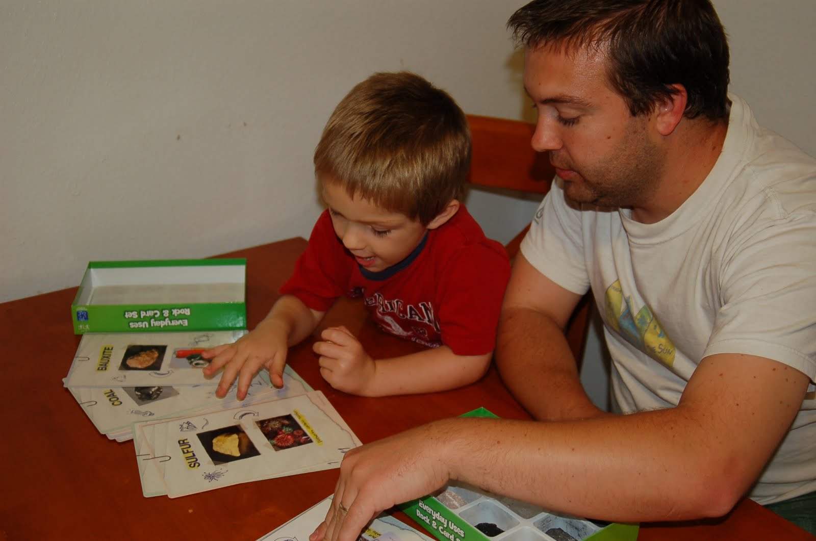 I highly suggest this Rock and Card set from Educational Insights! This is a fantastic tool to use for application lessons in science, for kids interested in rocks, for hands-on activities, and many more ideas. My husband was very impressed with such a nice set and has always wanted one for his classroom. It is extremely informational and full of fun facts and tidbits about each rock. The pictures on the ID cards are great quality and very attractive to look at. I love that the set includes numbers so that you can identify and label each rock. As you can see from all of the pictures even my 4 year old son is intrigued by learning about the rocks! Overall a fantastic kit- definitely worth the investment!!