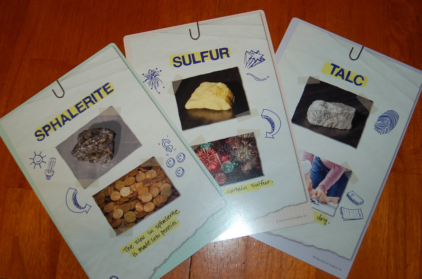 Upon further inspection inside the box we found the instruction manual, but on the back was this pre-made quiz that you can copy and use for your kids/classroom! My husband especially loved this! He can have his kids in school learn about each different rock in the kit and then take a quiz- and he hardly has to do a thing! This is a VERY nice bonus in this kit! The quiz lists the 12 different rocks included in this kit and the students must match the rocks to their appropriate description. Also inside of the manual is a glossary and other activity suggestions to do in conjunction with this kit.