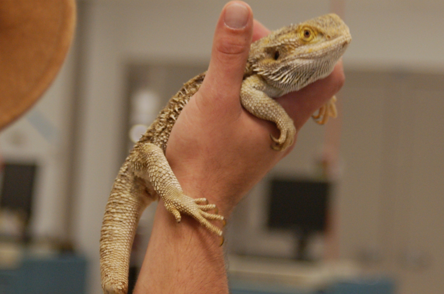 The third animal that Chris brought was a bearded dragon. I am familiar with bearded dragons as my sister in law breeds them, but most children are not. They learned about the protection of the scary-looking spikes on the dragon (not so scary at all!) as well as what they eat. Chris also put the bearded dragon on the floor so the children could see how slow and docile this animal really is.