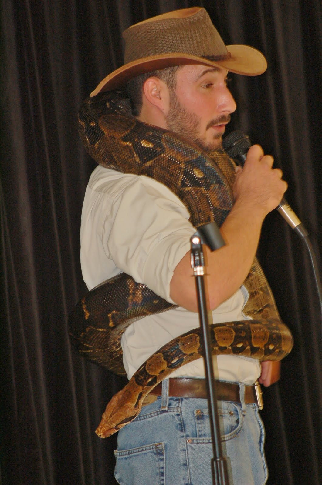 Since my children were not students of the school and my husband and I were there with them they had the opportunity to meet with Chris back on stage after the students left, and get a closer look at the animals. Now to be very honest, petting gators was nothing new for us. At Gatorland you can pet snakes and alligators. In fact, you can actually even sit on the back of a large alligator and hold the alligators head in your hands! It is really pretty cool and an experience you won’t find anywhere else! (legally anyways!)