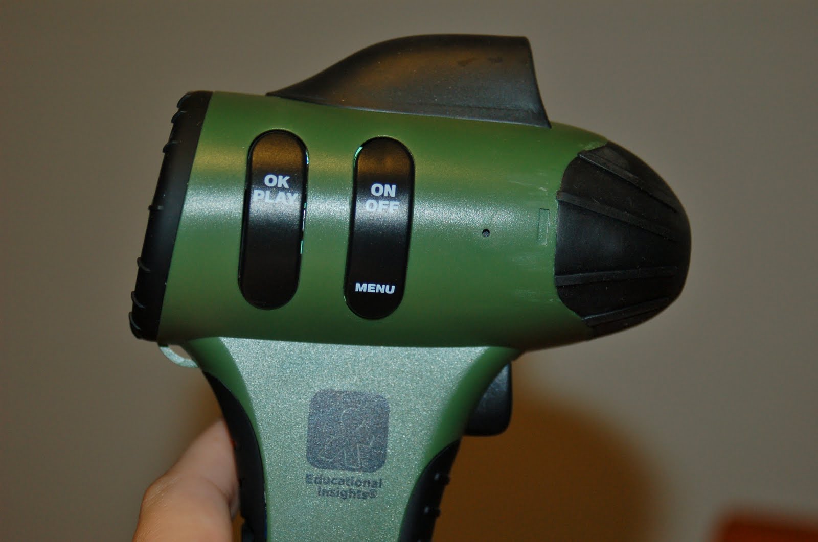 On the photos it’s difficult to see but in the bottom right corner the date and time is stamped on there which you can preset as desired. There are a huge amount of things that you can do with this both at home and in your classroom. You can go on a scavenger hunt documenting animals and plants, you can make a video for a cousin or for another class and send it to them, you can document activities in the classroom as well as use the Tuff Cam to make a podcast of a classroom lesson! Additionally if you have Educational Insight’s Tuff Scope it is compatible with that as well which can be used to view the microscope on the TV via the Tuff Cam. Not to mention just plain having fun with it!