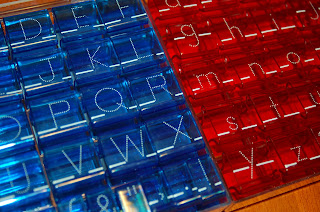 One thing that my son loves to do is to write letters to his cousins and grandparents! But writing out a full sentence for him is like pulling teeth. I used to let him type out his letters, or use alphabet stamps to stamp out his letters when he was a little younger, but now that he will be in kindergarden next year I really want him to work on being able to write his letters better. So I found these alphabet tracing stamps (uppercase and lowercase) from Learning Resources to help me do the job!