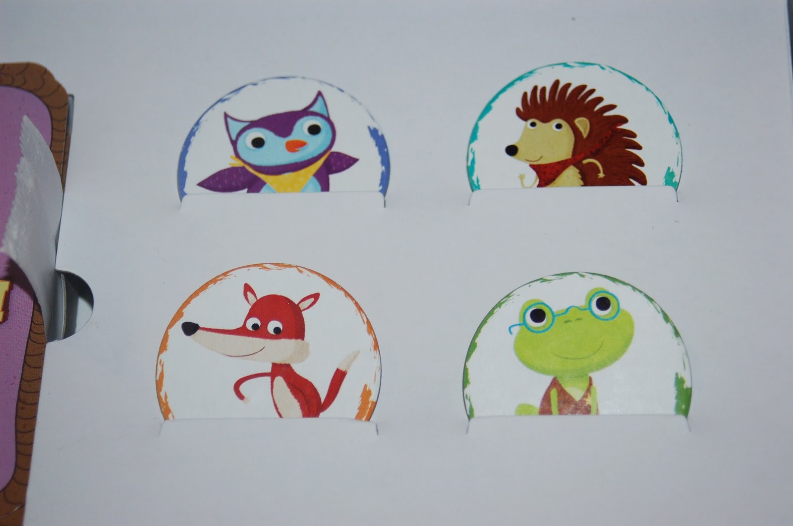 As with all of the other games invented by Jill Gaynor (Number Hunt and Woodsy Words) Reading Roundup has amazingly bright colors! I love her games as they immediately catch your eye! The game comes with the game board, 50 word cards, and 4 game pieces. I love that the game pieces even have a little holding place inside of the box! (you can see this below)