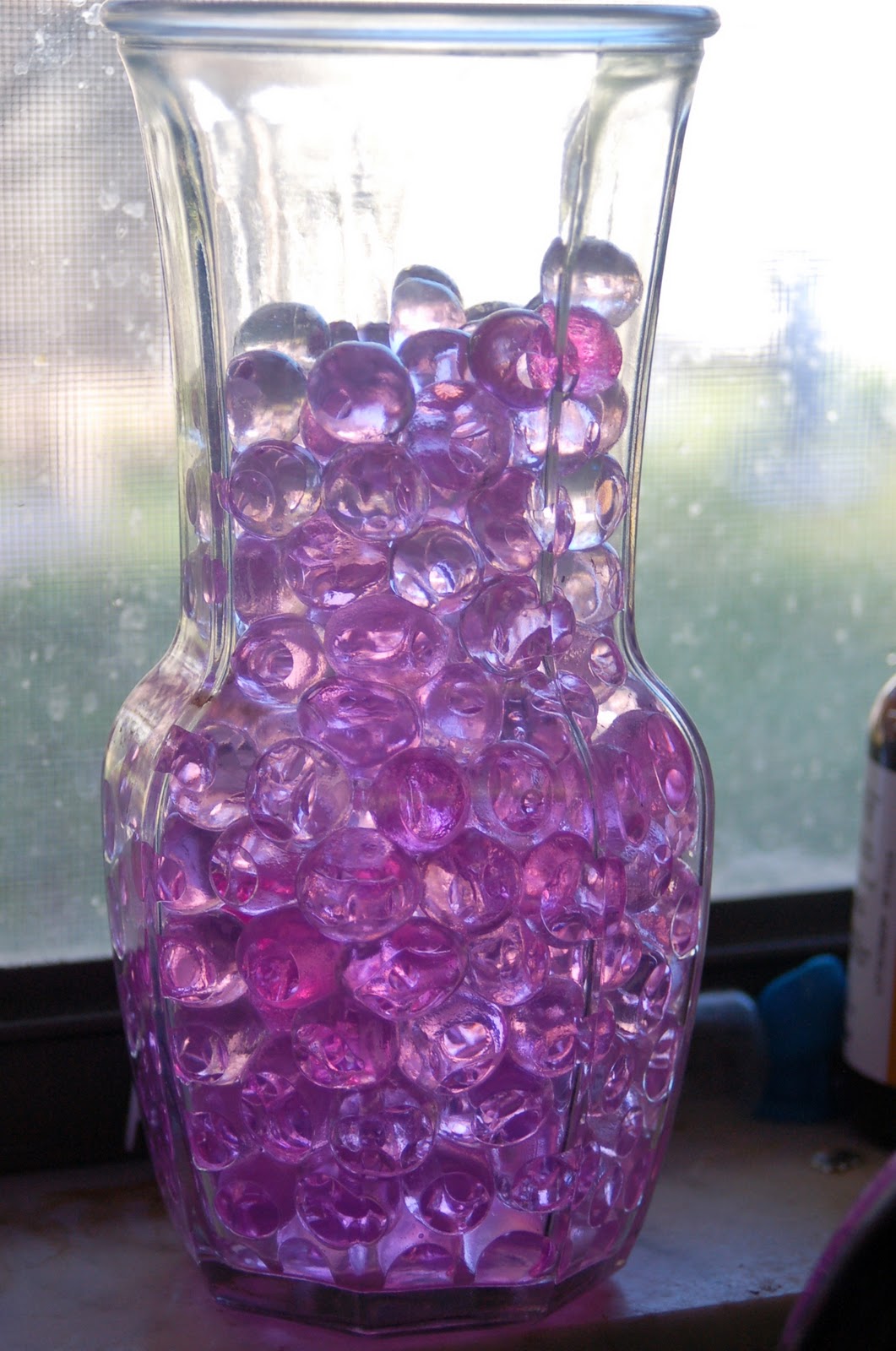 Remember this little grow-a-bouncy-ball kit I bought from the Dollar Tree? It came with 100 itty bitty little balls that we put in a dish of water……(you can purchase water beads here)