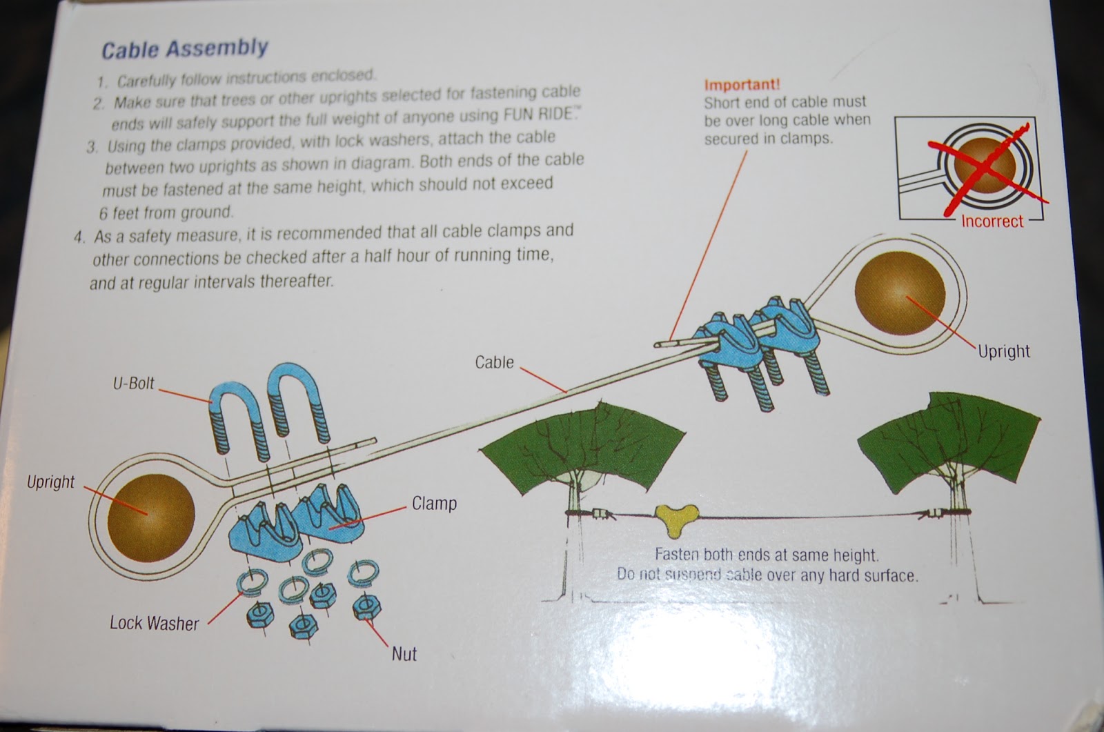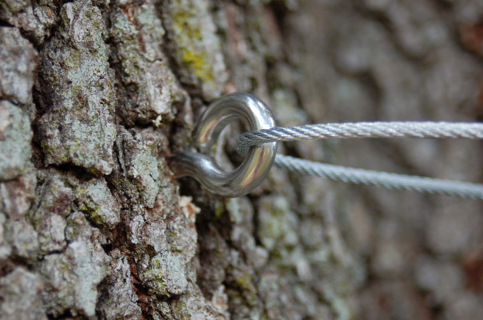 Because our oak trees are extra large our cable wouldn’t quite fit around it so we had to adjust slightly in order to put our zip line up between the trees. We were about 3 feet too short so my husband bought these eye hooks and screwed them directly into the tree in two different places to anchor it. It wasn’t a big deal at all and we really wanted the Fun Ride Zip Line between the two trees so it worked out great!